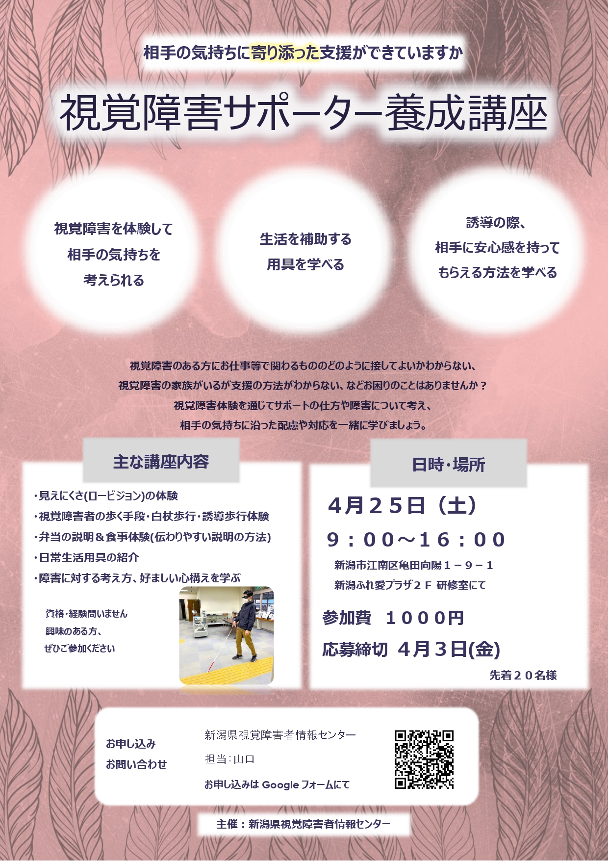 「視覚障害のあるかたに地域やお仕事などで関わりながらもどのように接してよいかわからない…」「視覚障害の家族への支援の方法がわからない…」
